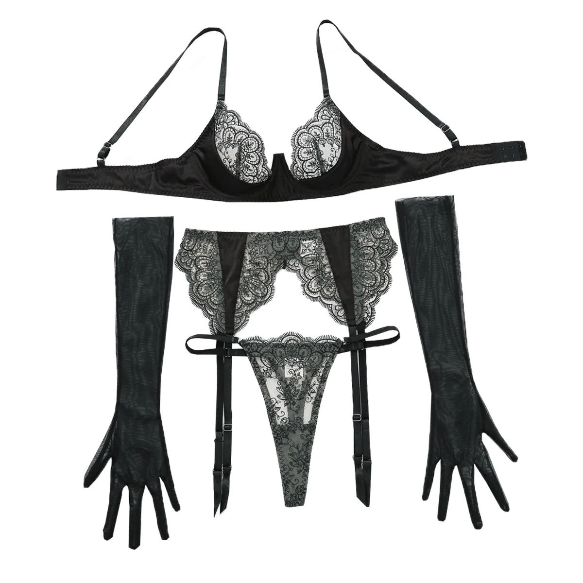 | Size | Under Bust (cm / in) | Cup Length (cm / in) | Garter Waist (cm / in) | Panties Waist (cm / in) | Panties Length (cm / in) | Gloves Length (cm / in) | UK Size Equivalent |